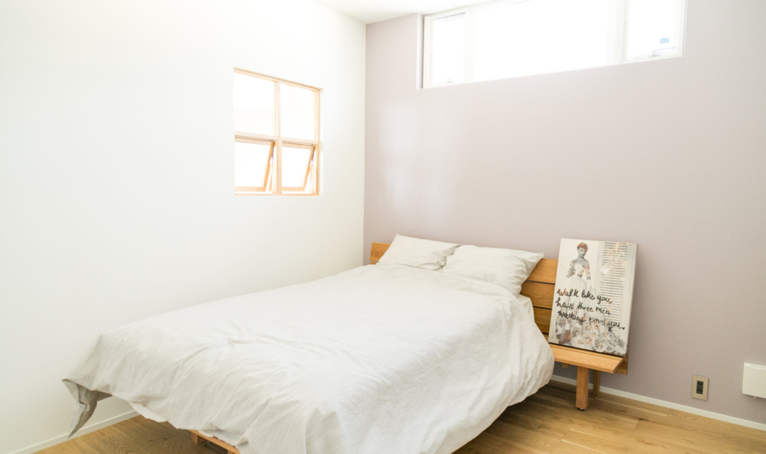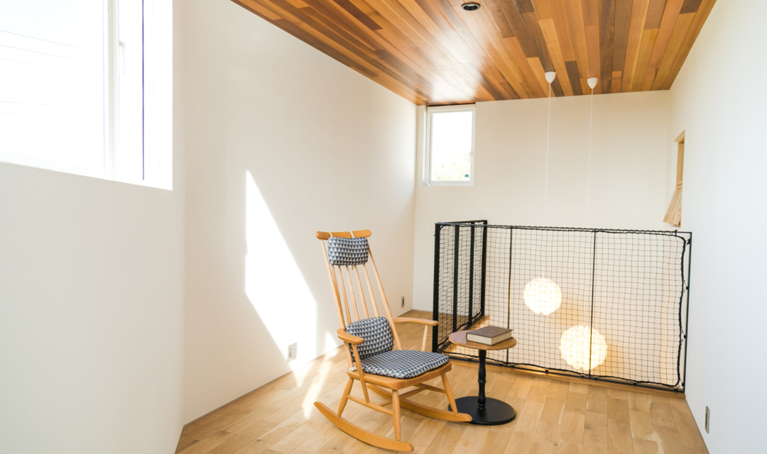 階段から2方向に分かれている間取り(階段→各個室 / 階段→玄関吹抜けとつながるフリースペース)と趣味室を軸にお庭・駐車場・洗濯室と多方向のアクセスができる間取りを計画。お庭は道路側から見えない位置にあり、お子様が遊ぶのにも安心のプライベート感のあるお庭に。趣味の釣り道具は車に運びやすいよう、趣味室と駐車場が隣接するプランを提案しました。間取りやデザインにもこだわりのあるお家が出来上がりました。