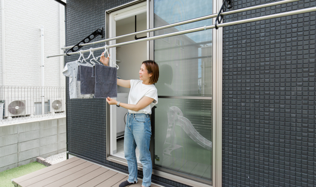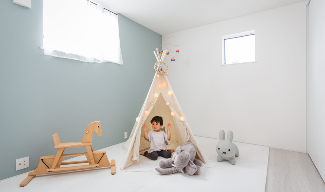 繋がりをコンセプトにしたM様邸の各階には随所に外へと繋がる工夫を施しています。1階ではリビングからお庭に、2階では廊下からインナーバルコニーに出ることができます。そしてこのお家一番の特徴は3階に設けられた屋上リビングです。このスペースでは、お友達を呼んでのパーティーや、旦那様が好きなサッカー観戦など憩いの場として利用できるスペースになっており、自然のロケーションと趣味をソファに座ってゆっくりと楽しむことができるのが特徴です。これらのようにM様邸では随所で外と中の繋がりを感じられるような設計をしています。また、趣味や家族の時間を楽しむためにも家事楽設計にもこだわりがあります。家事動線をまとめて奥様が洗濯など家事を楽しく楽にできるような配置計画になっており、ご夫婦のウォークインクローゼットも主寝室の外に設けるなど暮らしを考えた間取りに。さらにお子様部屋は将来お部屋を分けられるようにこれから先の暮らしを想定して設計をしていたり、少しずつDIYを通して楽しく暮らす余白があるお家に仕上がっています。