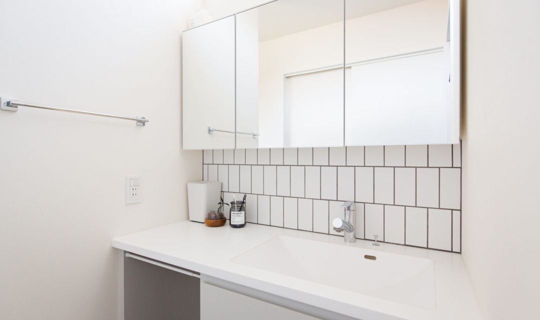 アイランドキッチンを中心に家族の動線がスムーズに出入りがしやすいような回遊性のある間取りとなっています。 キッチンの収納も豊富でスッキリとしたキッチン周りとなるようにしました。
