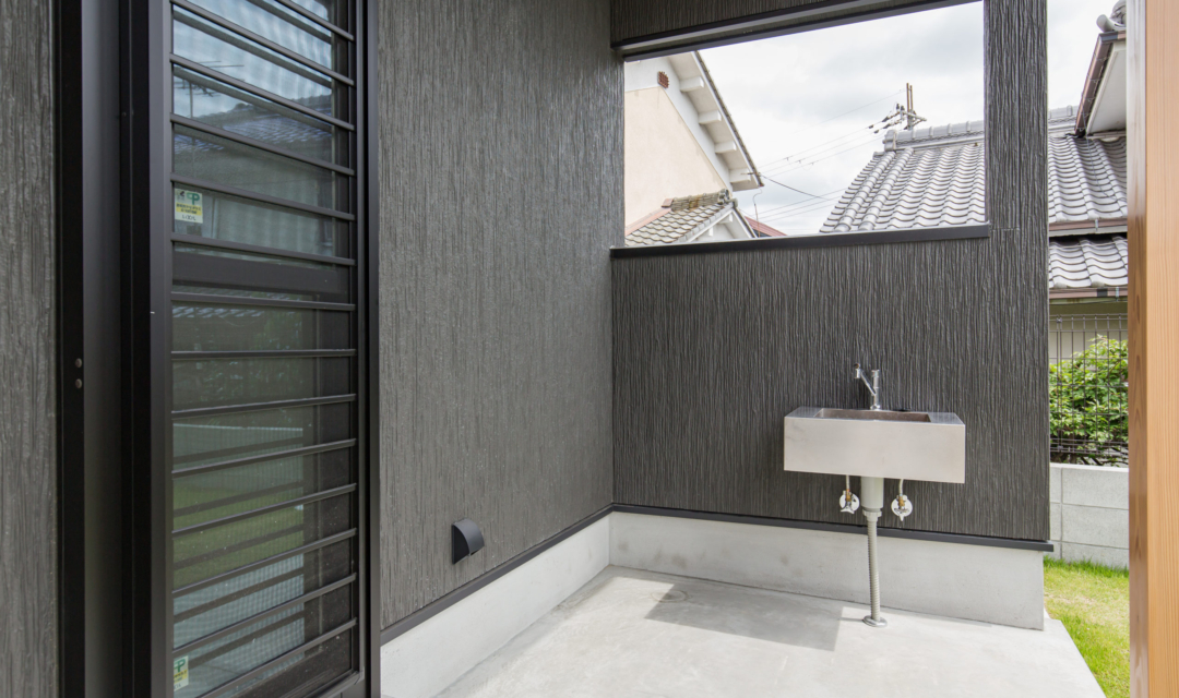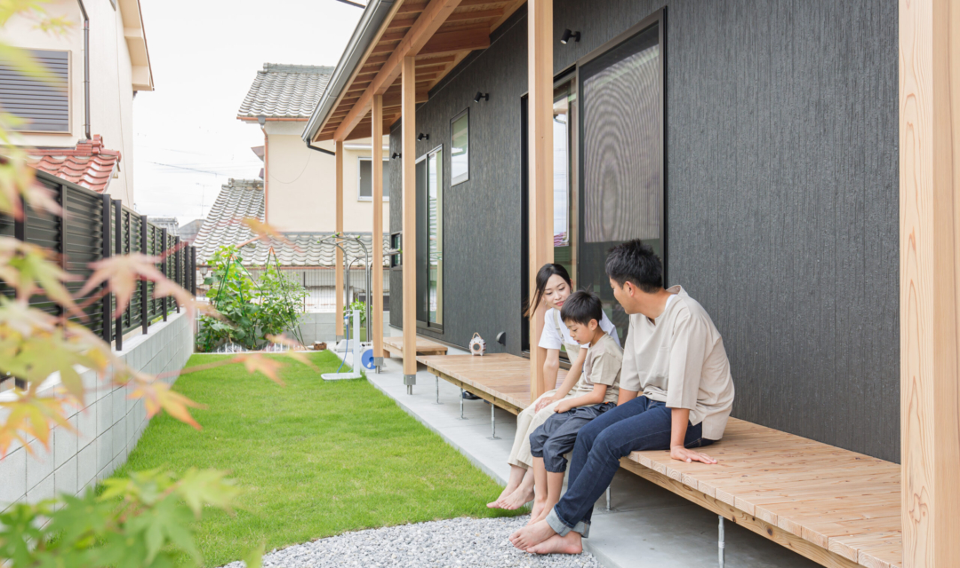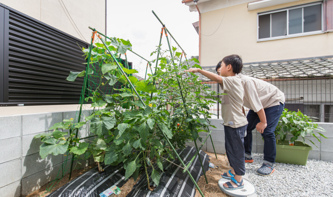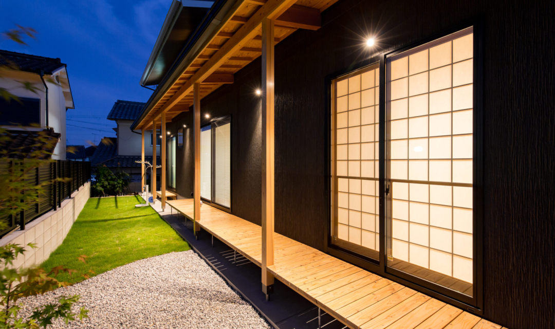 お家の東面に位置する縁側とお庭。長く続く縁側が特徴の場所。奥には、家庭菜園スペースを設け、季節によって違うお野菜が植えられます。夏場には、お庭にプールを出して縁側で体を拭く為の場所としてワンクッションを置けるように。お庭でBBQする際にもイスの代わりになり利便性が高い縁側です。また、軒があることにより夏や冬も柔らかい日差しがさし日向ぼっこにも最適です。夜には、お月見など家族の憩いの場になっています。